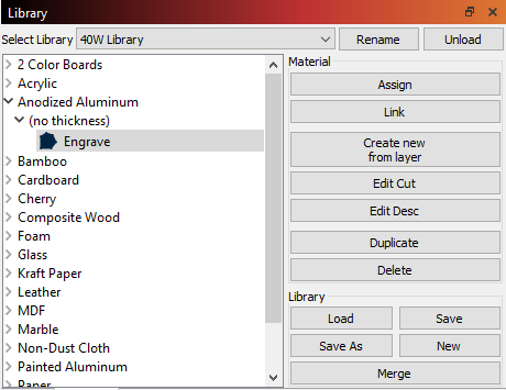 Please follow the documentation for how to create, edit, and, if needed, export a material library: https://docs.lightburnsoftware.com/latest/Reference/MaterialLibrary/