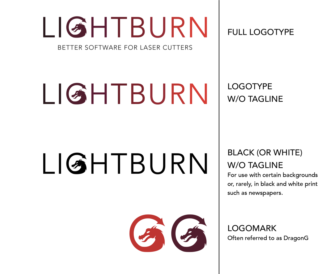 So you want to use the LightBurn logo? That's great — we love to see the LightBurn dragon out in the wild, and are happy to grant limited permission to our laser-community partners to feature our branding on their websites, social media posts, videos, and other marketing materials.
